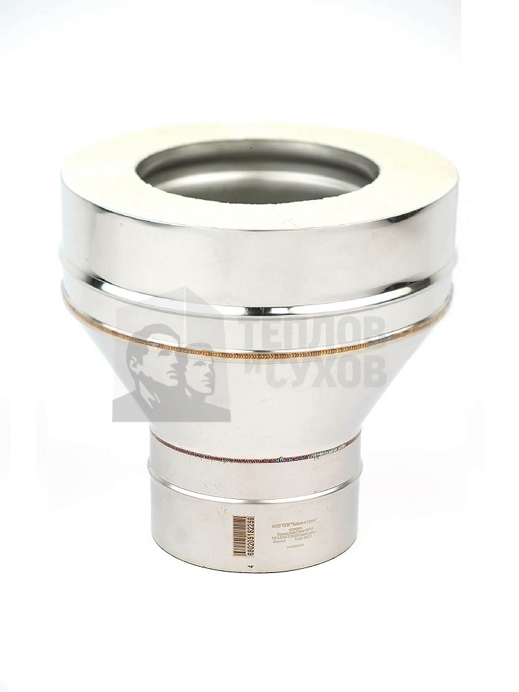 Переход Моно-Термо предназначен для перехода с неутепленного дымового канала Моно на утепленный Термо. Переход Моно-Термо является стартовым элементом для утепленного дымохода Термо, изолирует утеплитель трубы Термо.Толщина металла (внутренняя): 0.8