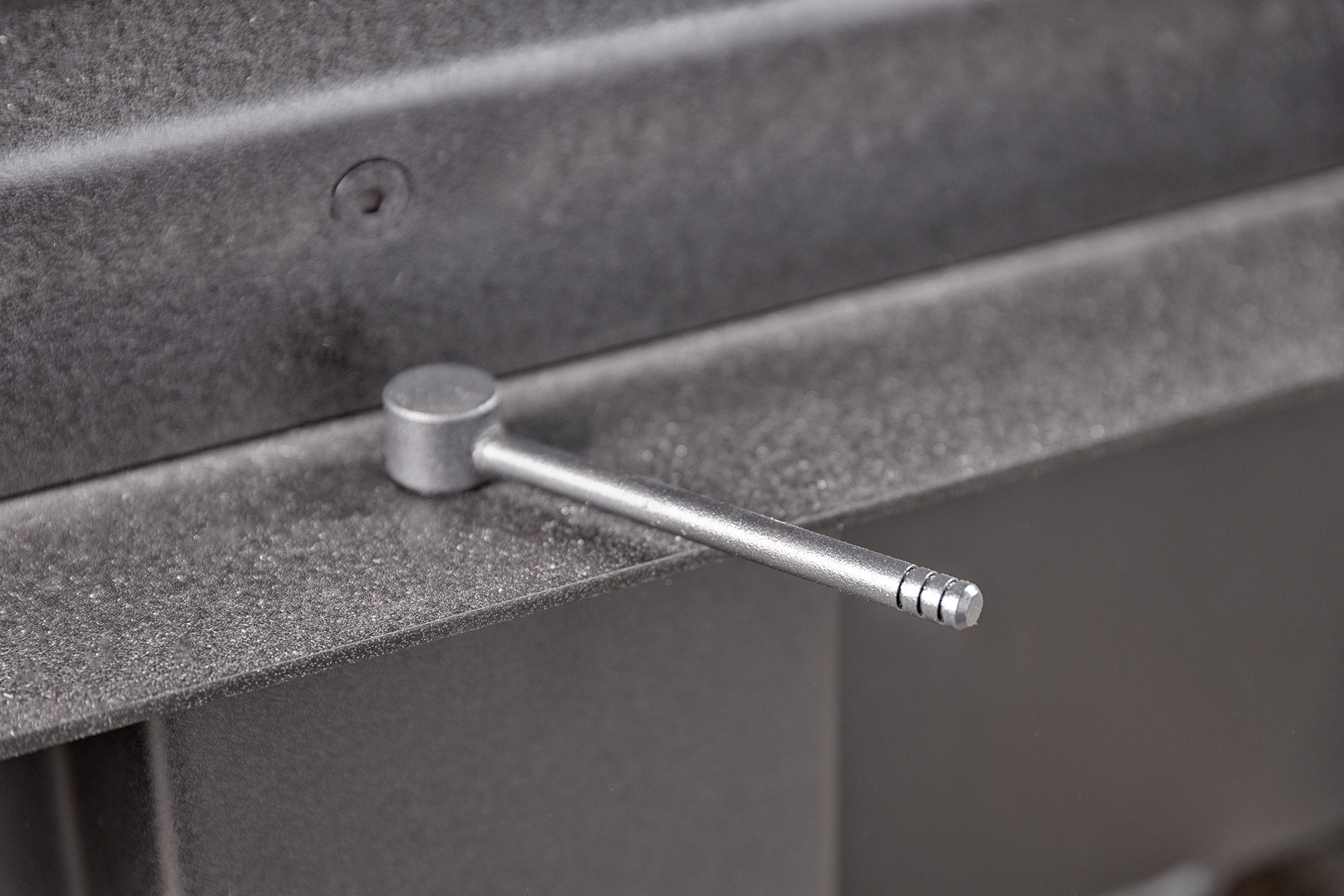 Топка выполнена из котельной стали с термостойким покрытием. Внутренняя футеровка из черного литьевого шамота с фактурой кирпича не только защищает корпус от перегрева, но и усиливает визуальную глубину огня, создавая эффект классического кирпичного камина.