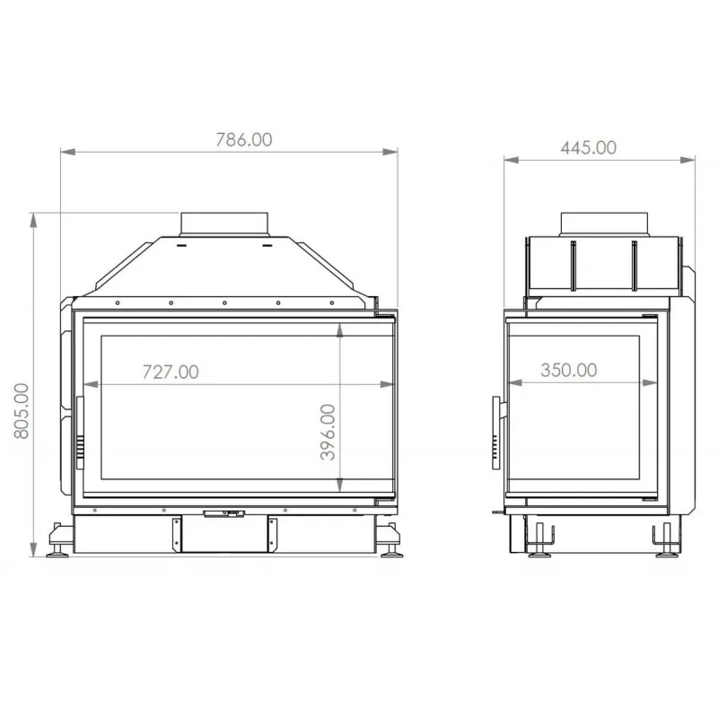 QUATTRO 70 R OPEN SIDE — каминная топка прямого типа от известного итальянского бренда. Она выполнена из надежной холоднокатаной стали. Дополнительную жаропрочность обеспечивает финишное огнеупорное покрытие. Благодаря такой структуре изделие способно прослужить много десятилетий.