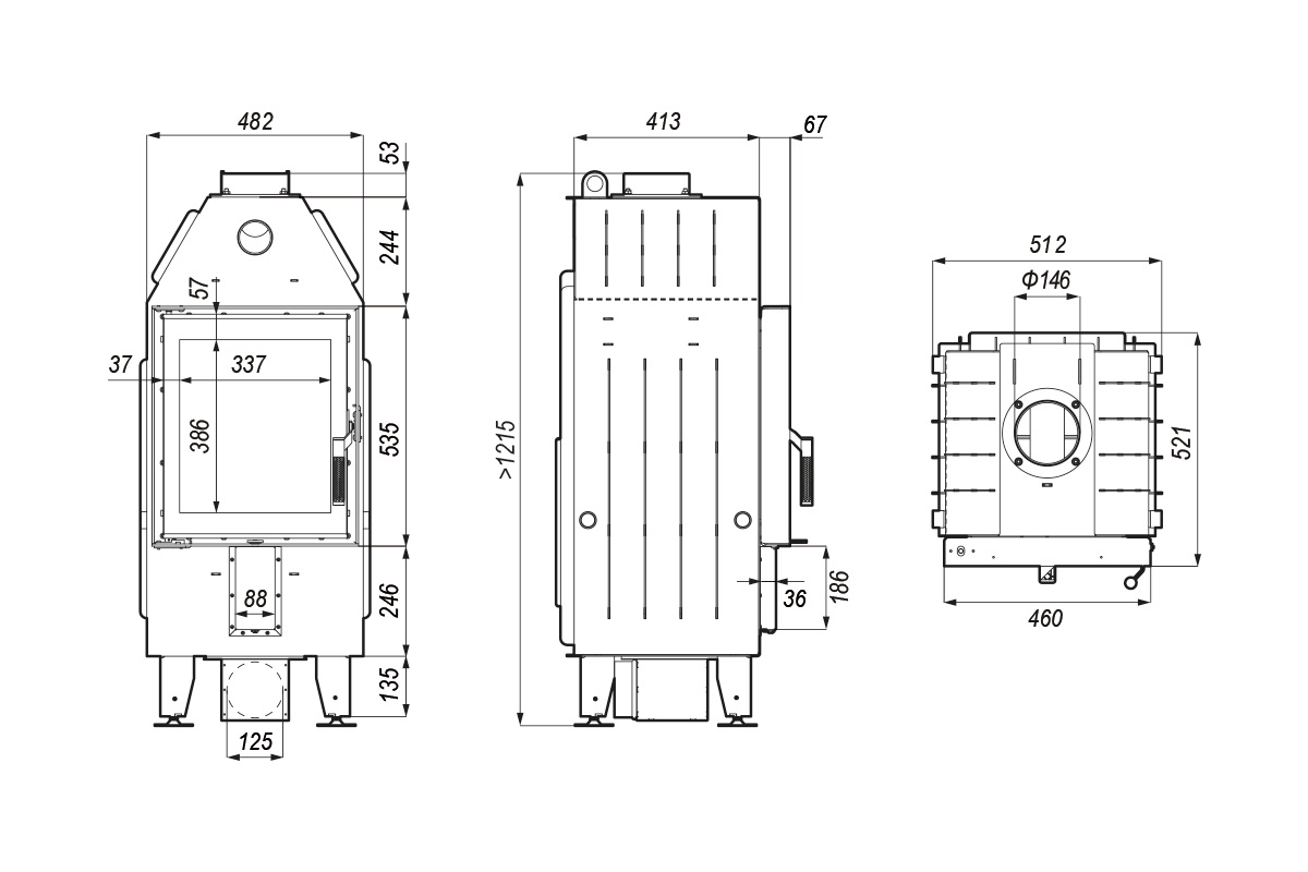 Серия доступна в четырех вариантах, в зависимости от размера очага: