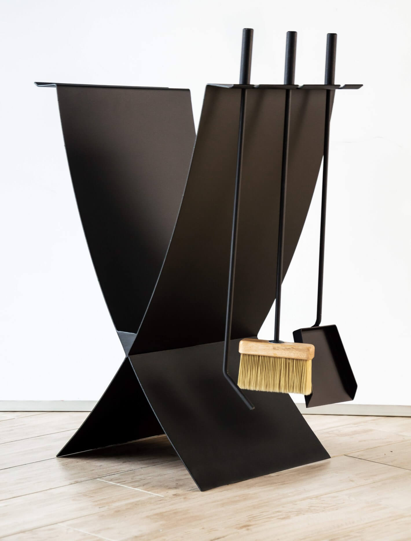 Необычная форма дровницы Ex позволяет ей сочетаться как с классическими каминами, так и с каминами в стиле хайтек.