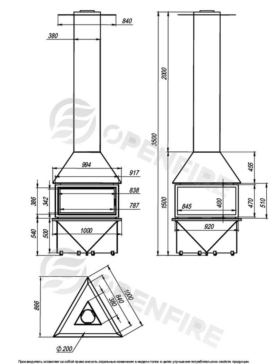 в стиле хай-тек, опирающийся на подставку из трёх стёкол.