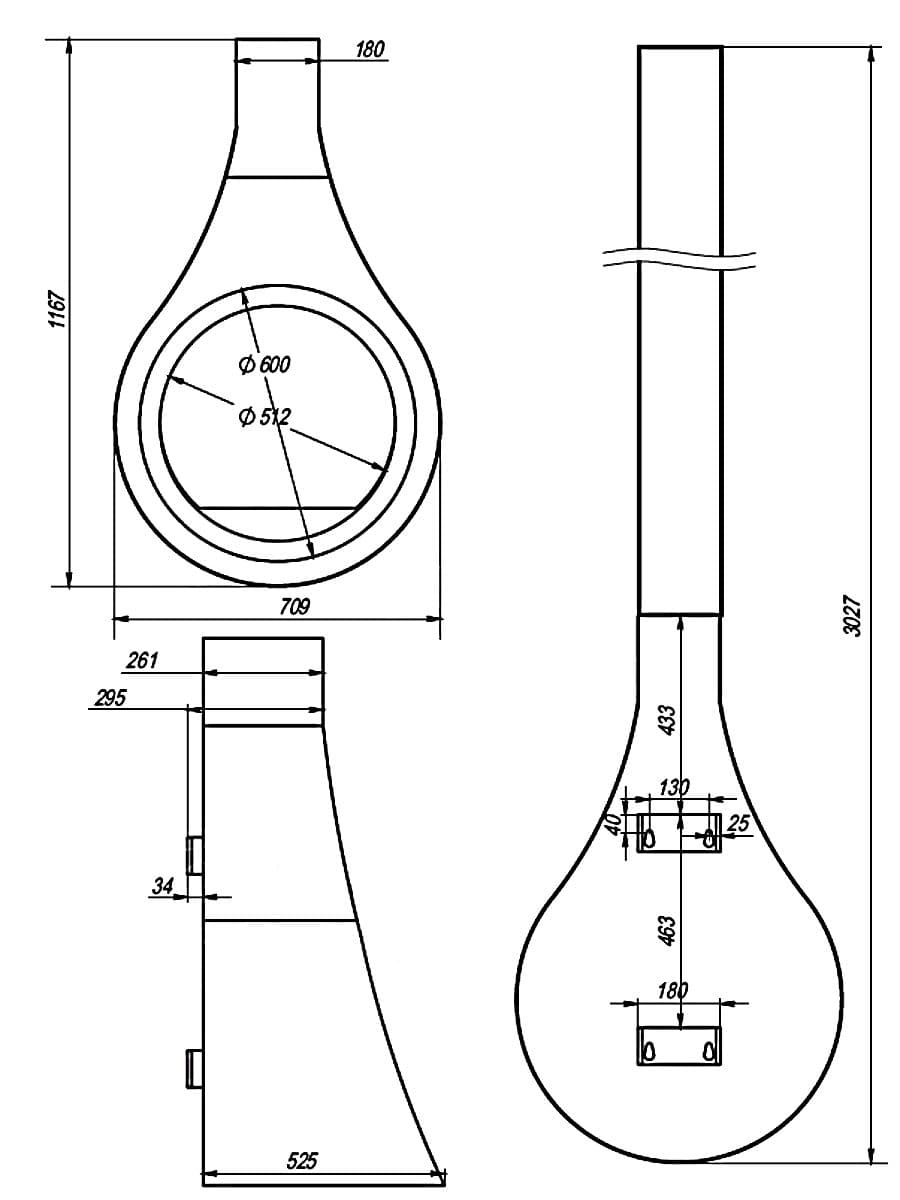 - Диаметр топки, дверки и стекла —710мм, 600 мм и 510 мм