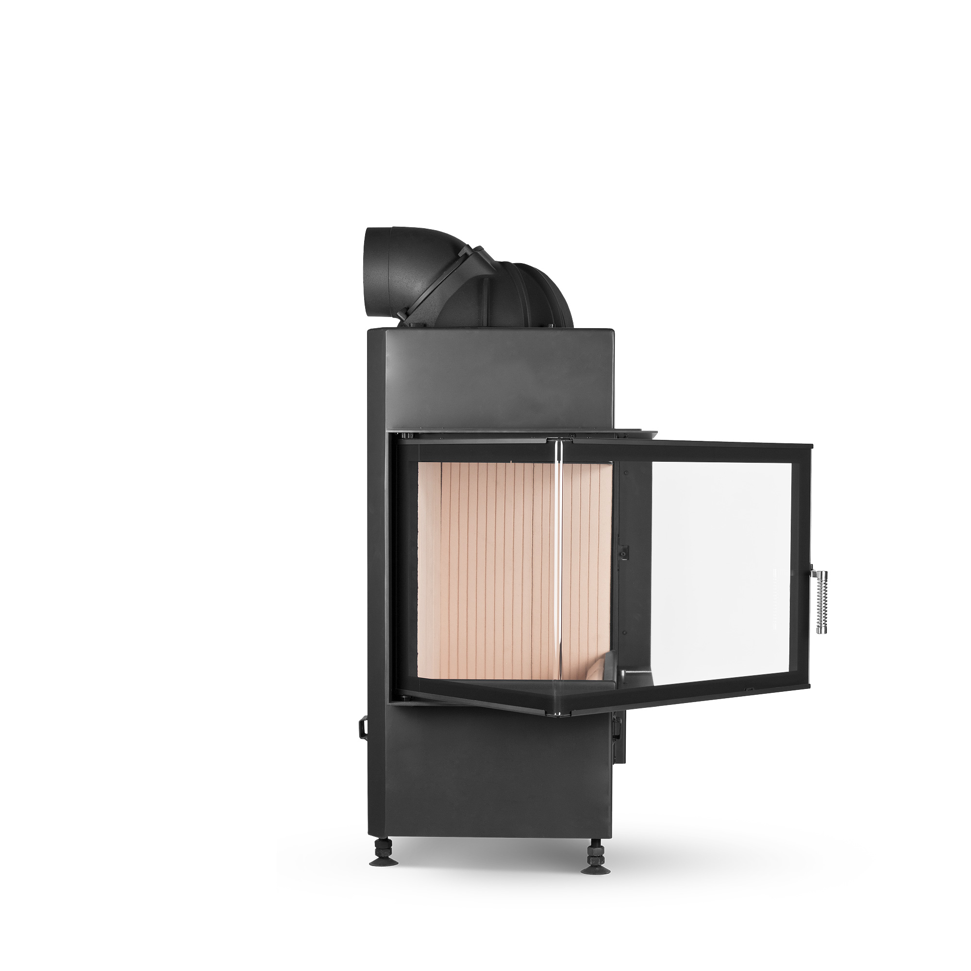 Съемная ручкаСъемная ручка двери создает естественный вид на пламя. Используется на всех топках с подъемом дверцы. Размещается рядом с центром тяжести дверки, поэтому вы чувствуете комфорт при открывании двери. Дверка поднимается и опускается плавно и легко. Закройте дверь и ручку можно снять. Так она не будет мешать обзору огня.