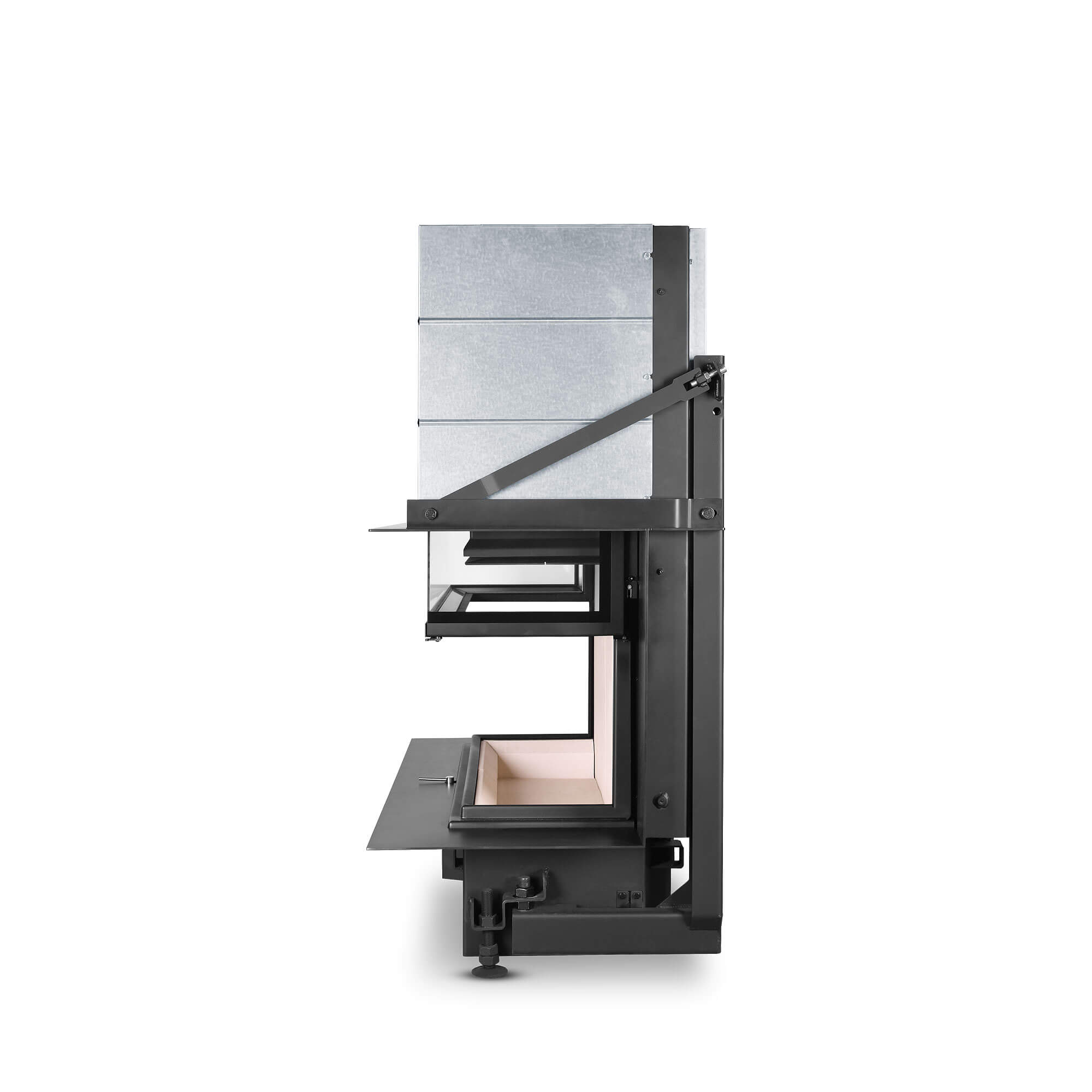 Поверхность дверцы состоит из стекла. Рама не видна. Это дает большой обзор и прекрасный вид на пламя огня.
