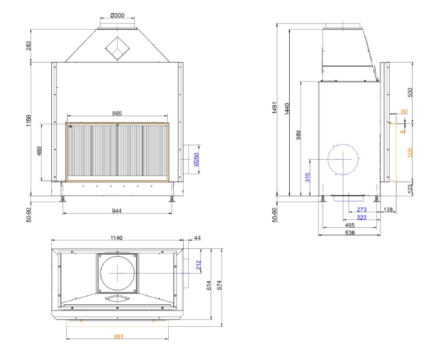 Топка изготовлена из прочной термостойкой стали и футерована огнеупорным шамотом, что обеспечивает надёжность, устойчивость к высоким температурам и длительный срок службы. Эффективная система дымоудаления и специально рассчитанная форма топочной камеры гарантируют чистое и стабильное горение даже при открытом фронте. Urfeuer 50/88 идеально подходит для просторных помещений с хорошей вентиляцией и станет настоящим центром притяжения — как в классических, так и в современных интерьерах.