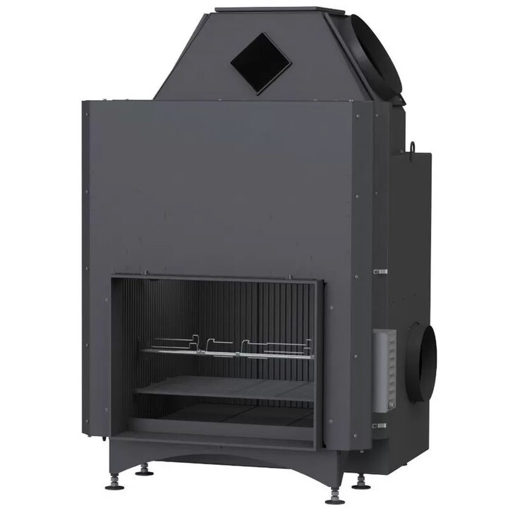 Открытая конструкция подчёркивает живую силу огня, создавая уютную, тёплую атмосферу и превращая кухню в центр общения. Топка выполнена из высококачественной стали с шамотной футеровкой, устойчивой к высоким температурам, и оснащена продуманной системой дымоудаления, обеспечивающей чистое и стабильное горение.